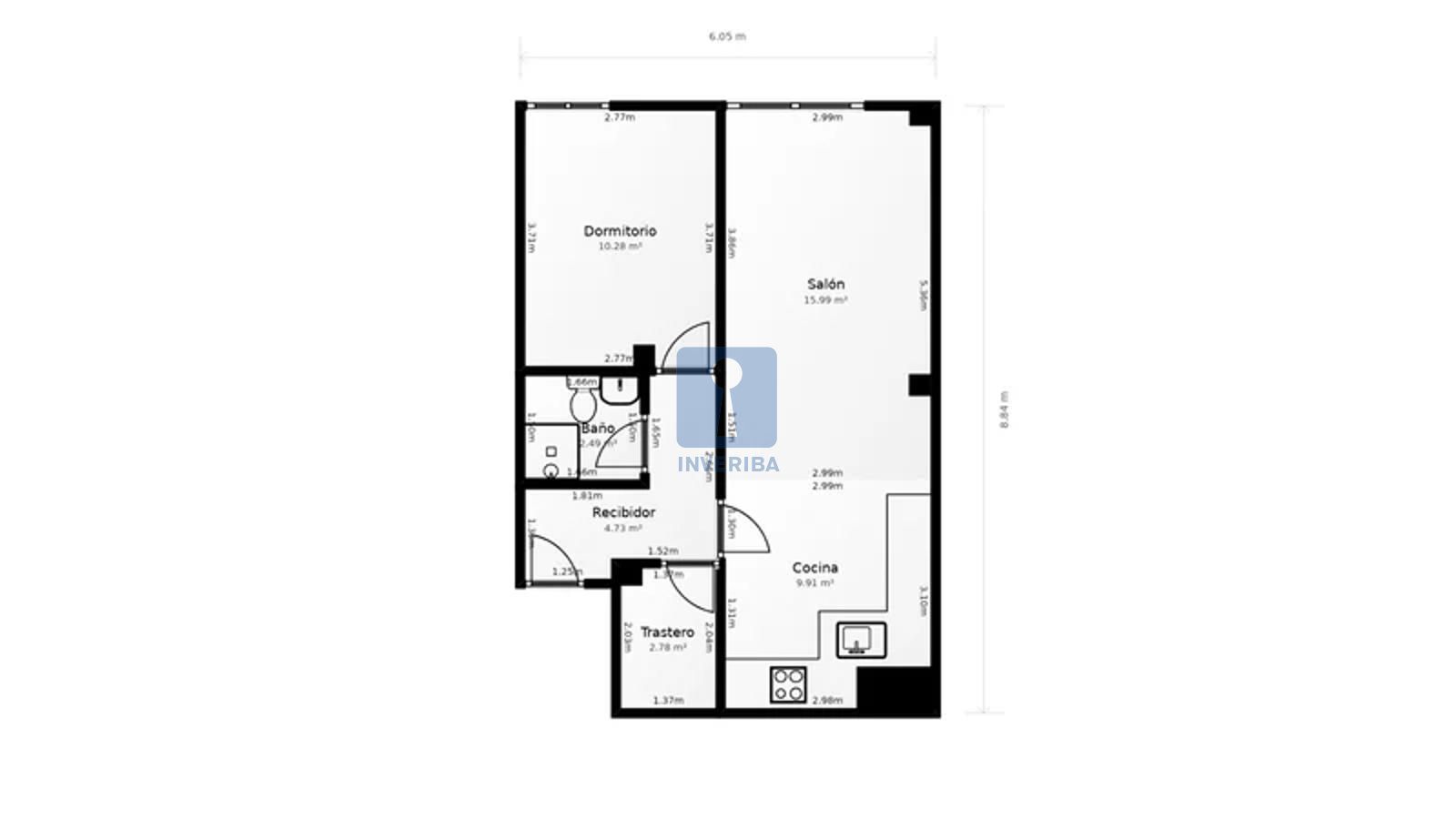 El inmueble dispone de una superficie de 62 m² construidos distribuidos en una habitación, salón-comedor, cocina y un aseo.